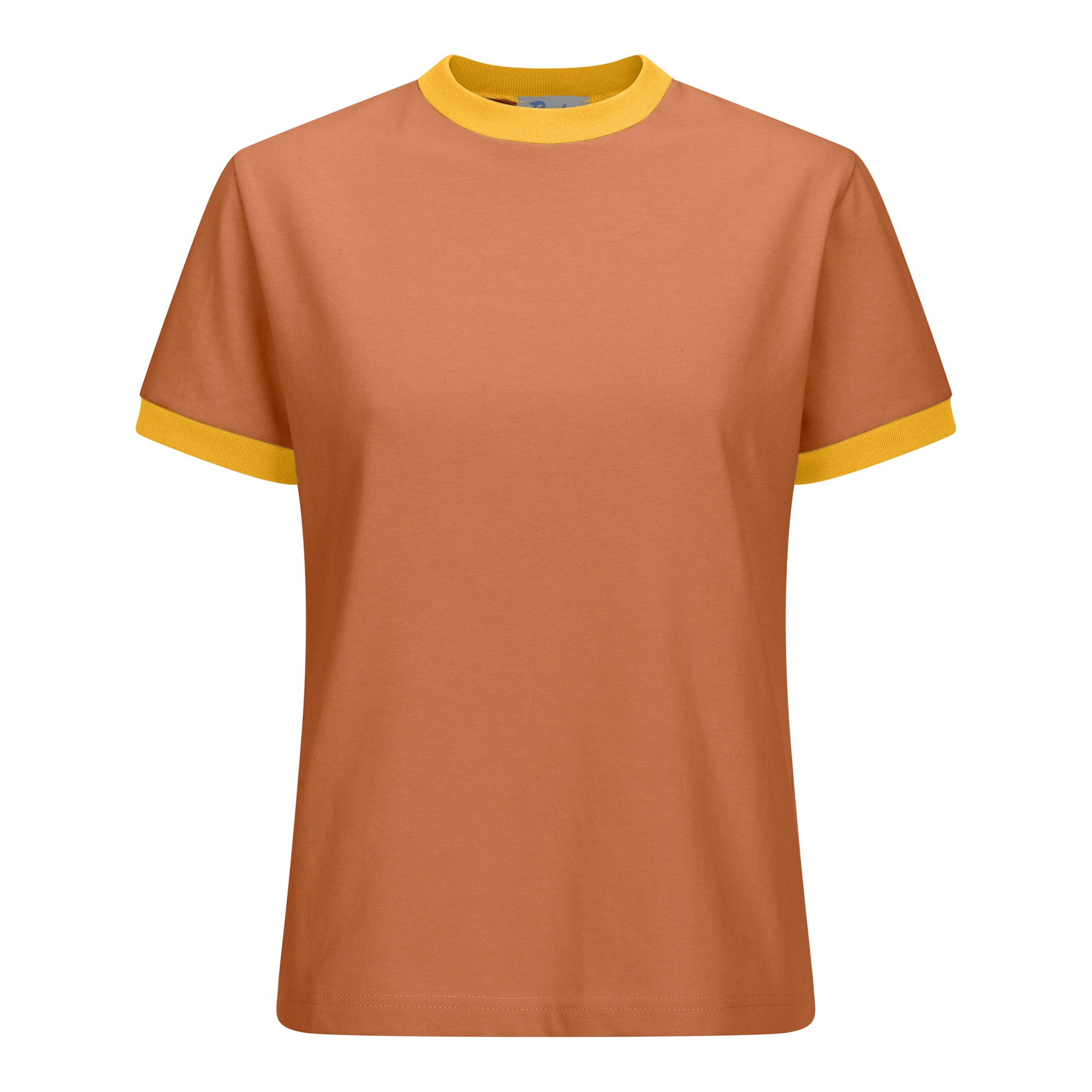 Autumn orange short-sleeved cotton tee with yellow ribbed trim